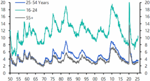 Beneath the surface, however, the story is more nuanced. The top 10% of earners – who account for roughly 40% of total spending – are indeed thriving. But as we move down the income ladder, a significant portion of the population is struggling to meet basic needs, as reflected in rising default rates. While this inequality will eventually carry economic costs, the strong balance sheets of banks and credit card issuers should prevent any broader contagion.