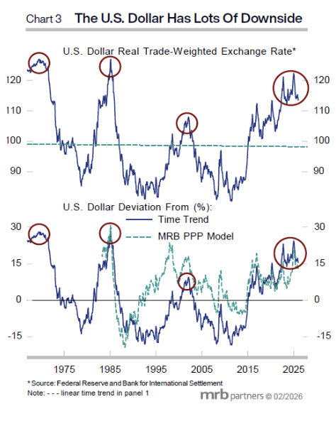 Alternatives to the USD—which is close to pre-conflict lows and still estimated to be overvalued by roughly 20%—can be found in regions with stronger balance sheets, such as Europe and Switzerland, or in economies with higher growth potential, such as selected emerging markets. Moreover, if one subscribes to the view that we are at the cusp of a new commodity super-cycle, it makes sense to focus on currencies of countries that rely heavily on raw material exports, as they stand to benefit. The Australian dollar, to cite just one example, fits this profile well.