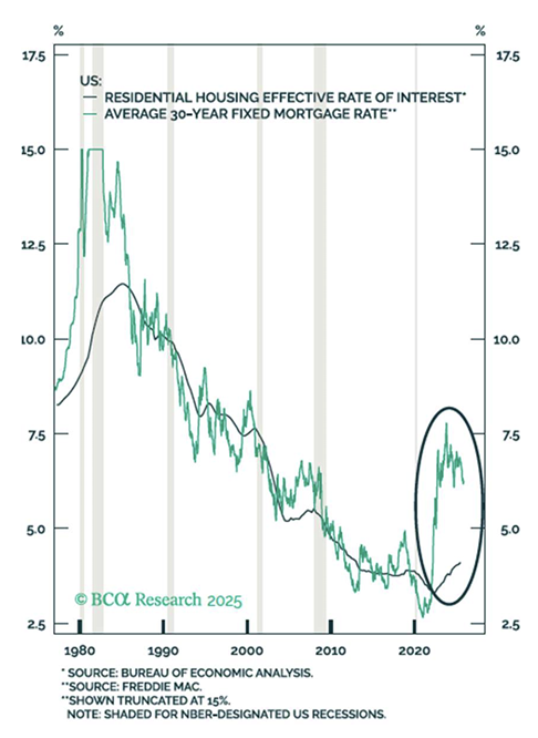 Speaking of affordability, consumers continue to spend in line with, or slightly more than, their income growth. This phenomenon – called dissaving – is propelling U.S. economic growth and is bound to last until either prices become too high or income growth stalls. The latter is currently normalizing toward a non-inflationary level, i.e., 3.5-4.0%, still enough to support consumption, especially while financial assets remain buoyant, driving a positive wealth effect. Unfortunately, wealth inequality remains; the top decile of the income distribution, representing 40% to 50% of discretionary spending, is doing well, but how much pent-up demand is left is unknown and, in our view, not much. The remaining segments of the population, especially lower-income earners, are pulling the brakes. For them, monetary and fiscal stimulus are clearly positive, but how effective these measures are for this portion of the population remains unclear. Fortunately, banks’ willingness to lend, alongside a lighter regulatory burden, is improving, which provides a safety net.
